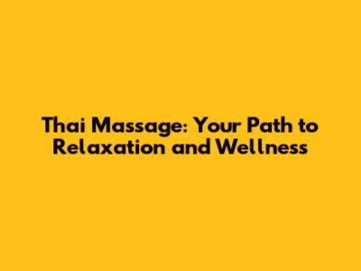 Thai Massage: Your Path To Relaxation And Wellness