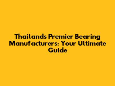 Thailand's Top Bearing Manufacturers: A Comprehensive Guide