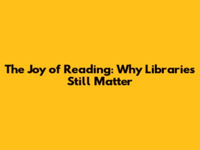 The Joy Of Reading: Why Libraries Still Matter