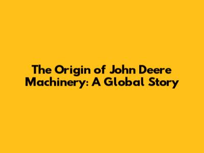 The Origin Of John Deere Machinery: A Global Story