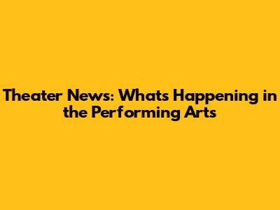 Theater News: What's Happening In The Performing Arts