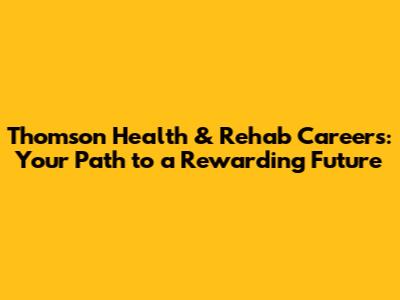 Thomson Health & Rehab: Your Career Path Awaits