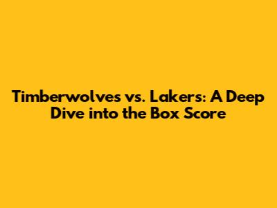 Timberwolves Vs. Lakers: Score, Stats, And Analysis