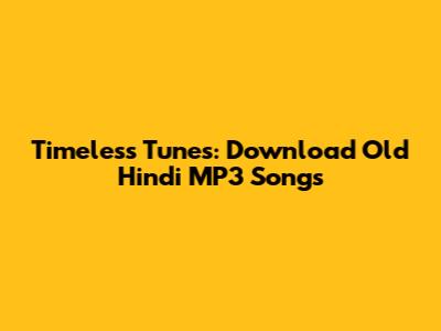 Timeless Tunes: Download Old Hindi MP3 Songs