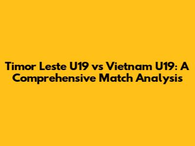 Timor Leste U19 Vs Vietnam U19: Match Analysis & Insights