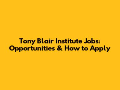 Tony Blair Institute Jobs: Opportunities & How To Apply