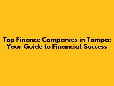 Top Finance Companies In Tampa: Your Guide To Financial Success