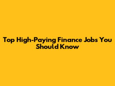 Top High-Paying Finance Jobs You Should Know