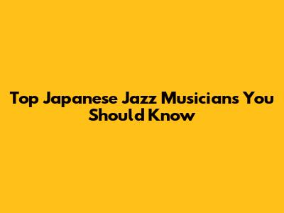 Top Japanese Jazz Musicians You Should Know