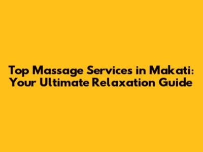 Top Massage Services In Makati: Your Ultimate Relaxation Guide