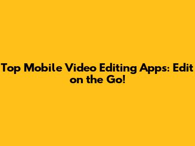 Top Mobile Video Editing Apps: Edit On The Go!