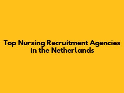 Top Nursing Recruitment Agencies In The Netherlands