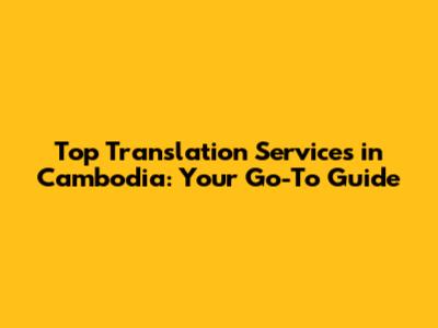 Top Translation Services In Cambodia: Your Go-To Guide