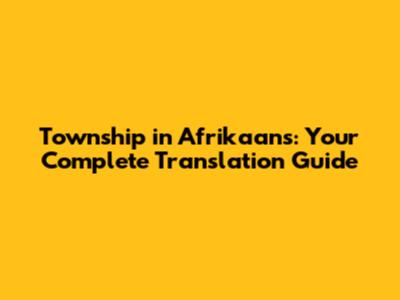 Township In Afrikaans: Your Complete Translation Guide