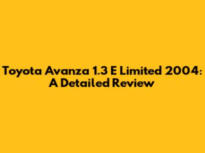 Is the Toyota Avanza 1.3 E Limited 2004 a Good Choice?