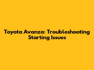 Toyota Avanza: Troubleshooting Starting Issues