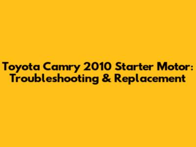 Toyota Camry 2010 Starter Motor: Troubleshooting & Replacement