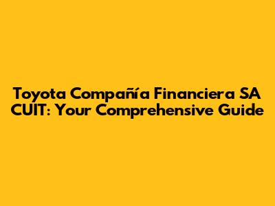 Toyota Compañía Financiera SA CUIT: Everything You Need To Know