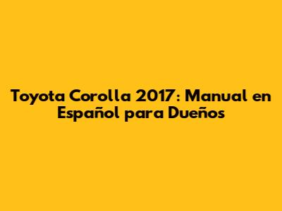 Dónde Encontrar el Manual de tu Toyota Corolla 2017 en Español (Where to Find Your 2017 Corolla Manual in Spanish)