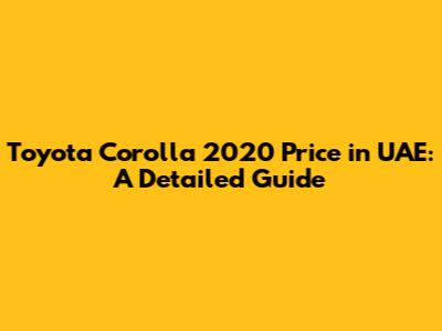 Toyota Corolla 2020 Price In UAE: A Detailed Guide