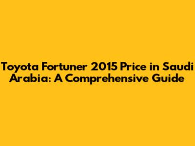 Toyota Fortuner 2015 Price In Saudi Arabia: A Comprehensive Guide