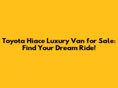 Toyota Hiace Luxury Van For Sale: Find Your Dream Ride!