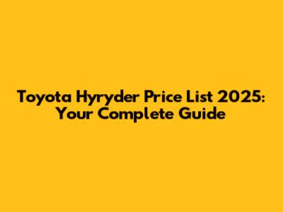 Toyota Hyryder Price List 2025: What You Need To Know