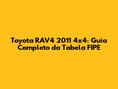 Toyota RAV4 2011 4x4: Guia Completo Da Tabela FIPE