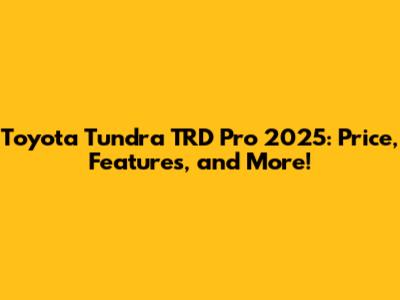 Toyota Tundra TRD Pro 2025: Price, Features, And More!