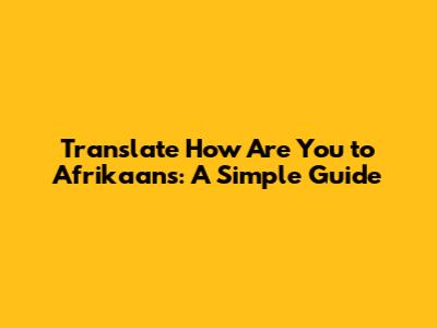 Translate 'How Are You' To Afrikaans: A Simple Guide