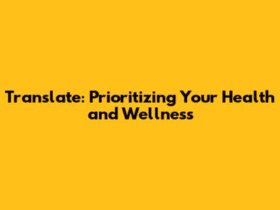 Translate: Prioritizing Your Health And Wellness