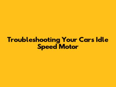 Troubleshooting Your Car's Idle Speed Motor