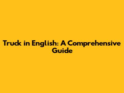 Truck In English: A Comprehensive Guide
