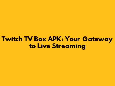 Twitch TV Box APK: Your Gateway To Live Streaming
