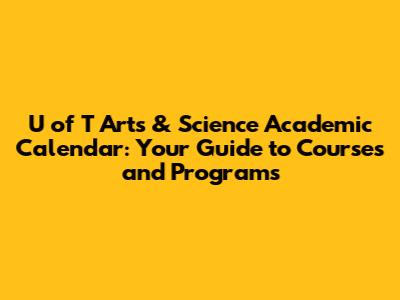 U Of T Arts & Science Academic Calendar