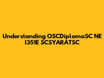 Understanding OSCDiplomaSC NE I351E SCSYARATSC