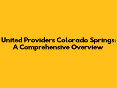 United Providers In Colorado Springs: A Comprehensive Overview