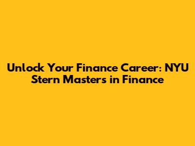 Unlock Your Finance Career: NYU Stern Masters In Finance