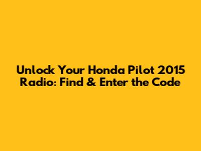 Unlock Your Honda Pilot 2015 Radio: Find & Enter The Code
