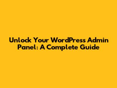 Unlock Your WordPress Admin Panel: A Complete Guide