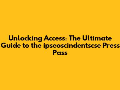 Unlocking Access: The Ultimate Guide To The Ipseoscindependentscse Press Pass