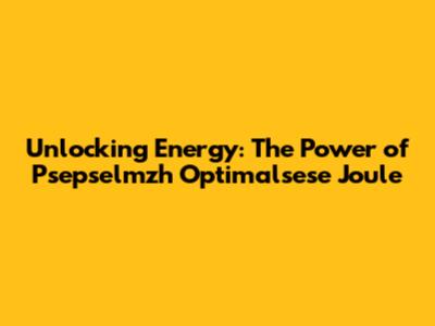 Unlocking Energy: The Power Of Psepselmzh Optimalsese Joule