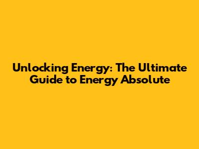 Unlocking Energy: The Ultimate Guide To Energy Absolute