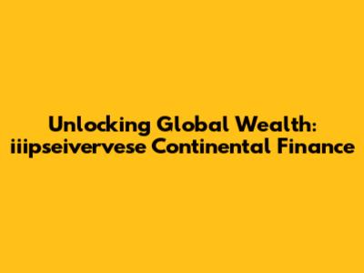 Unlocking Global Wealth: Iiipseivervese Continental Finance