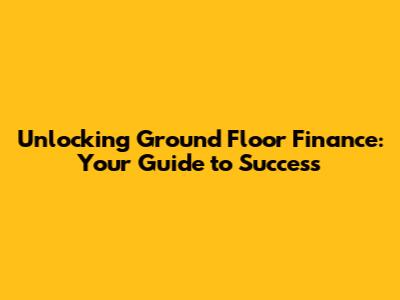 Unlocking Ground Floor Finance: Your Guide To Success