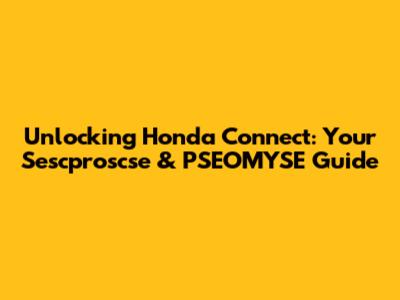 Unlocking Honda Connect: Your Sescproscse & PSEOMYSE Guide