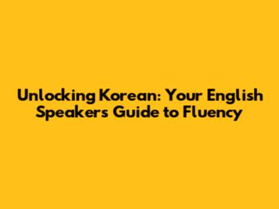 Unlocking Korean: Your English Speaker's Guide To Fluency