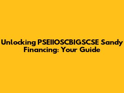 Hey everyone! Today, we're diving deep into the world of PSEIIOSCBIGSCSE Sandy Financing. This might sound like a mouthful, but trust me, it's a super important topic. We'll break down what it is, why it matters, and how you can navigate it like a pro. Think of this as your go-to guide, designed to make understanding this complex topic easy and maybe even a little fun. Let’s get started and demystify PSEIIOSCBIGSCSE Sandy Financing together.