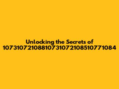 Unlocking The Secrets Of 10731072108810731072108510771084
