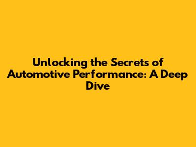 Unlocking The Secrets Of Automotive Performance: A Deep Dive